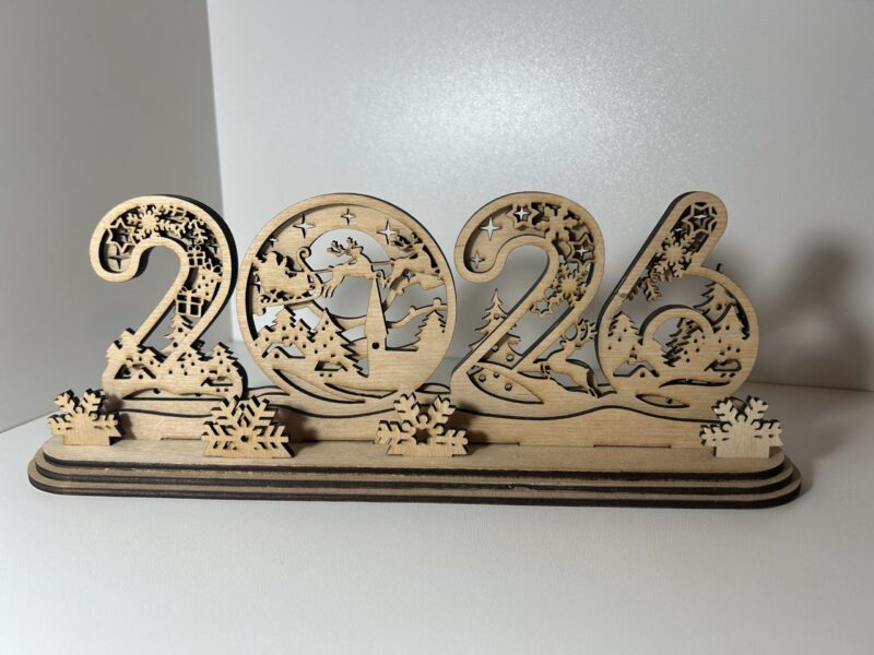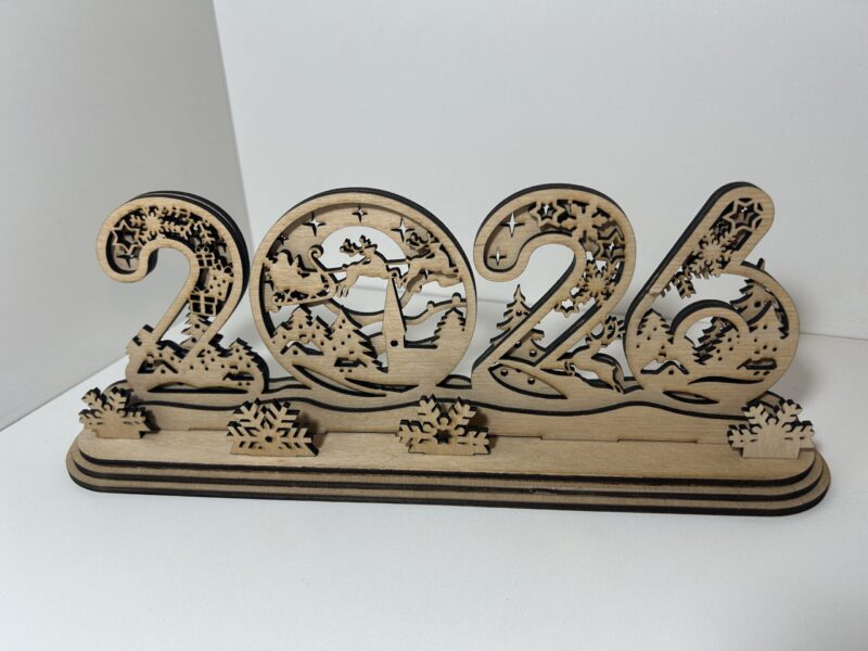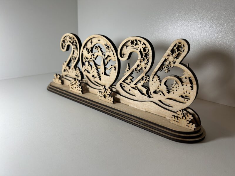 Készíts meghitt, ünnepi hangulatot ezzel a lézervágott 2026-os fa dísztárggyal, amely a karácsony minden varázsát magában hordozza!